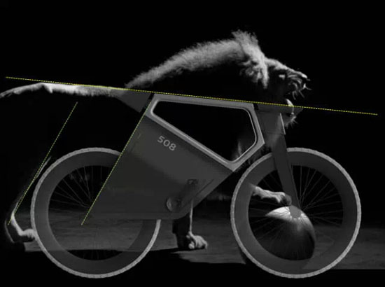 同样,杨明洁在设计这款创新 508 E-BIKE 智能电动单车过程中,尝试在雄狮的形体线条中捕捉它所拥有的力量感,并将这种力量感完美的演绎到单车的设计当中。紧绷弓起的背部线条、蓄势待发的后腿、肌肉收缩的腹部,所有的线条汇聚形成了一种向前冲刺的力量感,由此组成了一辆颇具动感与力量的智能电动单车。