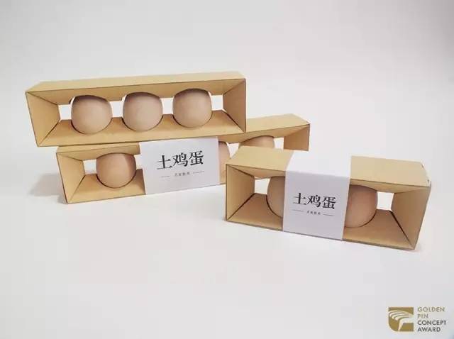 吴忠、陈俊昀的“土鸡蛋包装设计”,运用了未经任何加工的牛皮纸,并运用“榫卯”结构设计保护内容物,呼应环保。